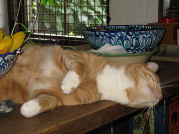 Afgelopen week hebben mijn katten weer eens een heerlijke trip gemaakt toen ik de pot valeriaanwortel op het aanrecht zette! Ze gingen helemaal uit hun dak toen ze de geur opsnoven en er vervolgens in gingen liggen rollen. Wammes at het zelfs op, wat overigens helemaal geen kwaad kan. En Doortje belandde in de gootsteen! Dat was een natte trip!
