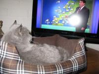 Als we even kijken naar de anatomie van de kat, weten we dat katten minder kleur zien dan mensen: katten zien iets meer dan honden in de kleuren blauw, groen en geel. Rood zien ze bijna niet. Ze zijn dus een beetje kleurenblind. In het donker zien ze trouwens wel veel beter dan mensen. Katten kunnen heel goed diepte/afstanden schatten, reden ook waarom ze zulke goede jagers zijn, maar ze zien minder scherp dan mensen. Wat een kat op 20 meter afstand ziet, ziet een mens op 75 meter. Katten zien omtrekken, contouren en volgen die. Dus mogelijk moet uw kat met zijn neus gekluisterd aan het beeldscherm zitten! De meeste katten verwerken visuele beelden veel sneller dan de mens, een reden waarom u eigenlijk direct naar de winkel moet rennen om een tv met LCD- scherm te kopen om uw kat optimaal te kunnen laten genieten van de snel bewegende beelden! Als u dan ook nog programma’s uitzoekt met veel contrast, helderheid, beweging en liefst blauwe of gestreepte kleding, dan is de kans op plezier het grootst. Waarbij, zoals gezegd, het karakter van de kat bepalend is of hij liever naar natuurbeelden van vogels, muizen of vissen kijkt- een favoriet bij de meeste katten: hun jachtprooi- of dat hij naar sport kijkt- ook veel bewegende beelden- of misschien kijkt hij wel naar het weerbericht of naar uw favoriete soap!