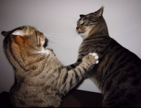 Nu het langer licht is en de zon schijnt, komt uw kat, en ook andere katten, waarschijnlijk meer buiten. Bij intacte katers, gaan nu echt de hormonen werken, waardoor ze verder op pad gaan, ook buiten hun territorium, om een tot paring bereide poes te vinden. Zo’n kater kan dus ineens door uw tuin lopen en daar uw katten tegenkomen die lekker samen van het zonnetje genieten. Dit kan gevolgen hebben voor uw katten en hun verstandhouding. Afhankelijk van wat ze gewend zijn, zullen ze vluchten voor of vechten met deze indringer. Nu kan het gebeuren dat er één in gevecht gaat en de ander terug gaat het veilige huis in. Echter de vechter kiest uiteindelijk eieren voor zijn geld en vlucht ook naar binnen. In volle vaart stuift hij zijn huis in, waar hij stuit op zijn huisgenoot, die al eerder gevlucht was. Deze ziet nu zijn huisgenoot op zich afstuiven, en uit angst valt hij hem aan. En zo ontstaat er plotselinge agressie tussen de twee katten. Sterker nog, elke keer als ze elkaar nu weer tegenkomen in huis, schieten ze weer in de eerder negatieve ervaring, in de angst, de agressie en zo blijven zij elkaar aanstaren en vechten, tot wanhoop van hun personeel. En natuurlijk levert zo’n leefsituatie voor de katten veel stress op, niet bevorderlijk voor hun kwaliteit van leven.