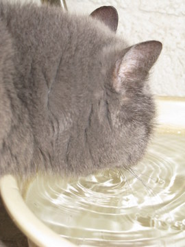 Veel katten vinden het overigens prettig om bewegend water te drinken. Daarvoor zijn drinkfonteinen in de handel. Deze zijn ook handig om een kat aan te moedigen om te drinken. De meeste katten hebben de neiging om te weinig te drinken wat blaas- en nierproblemen tot gevolg kan hebben. Daarom verdient het aanbeveling om de voer- en waterbak niet naast elkaar te zetten en liever op meerdere plaatsen in huis waterbakjes en/of fonteintjes te zetten.