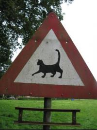 Je kunt natuurlijk een bord langs de kant van de weg zetten en hopen dat je kat weer heelhuids thuiskomt. Op zich, een creatieve oplossing! Maar geen garantie op succes, lees overleven van uw kat. Want juist in het buitengebied, op rustige wegen tussen boerderijen, waar ik dit bord tegen kwam, wordt hard gereden. En hoe slim uw kat ook mag zijn, een ongeluk zit in een klein hoekje!