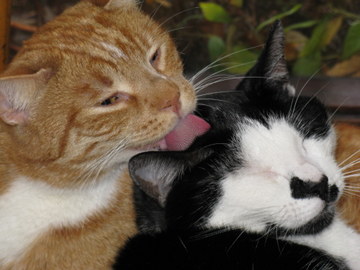 Mogelijk worden ze vriendjes zoals de katten op de foto hieronder.