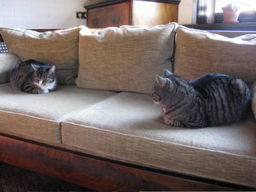 Het kan ook gebeuren dat ze elkaars aanwezigheid in huis wel accepteren, maar dat ze niets samen doen, zoals deze katten.